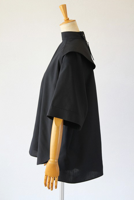 肩のデザインが印象的なハーフスリーブのブラウスです。